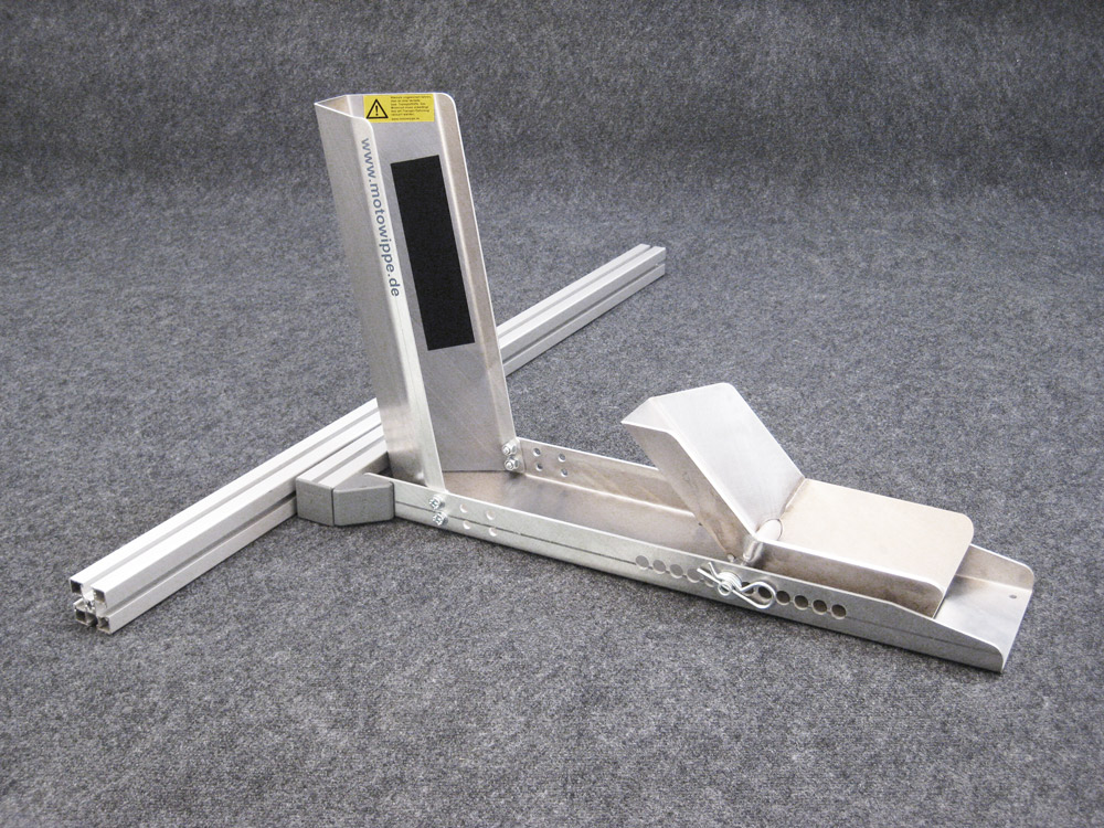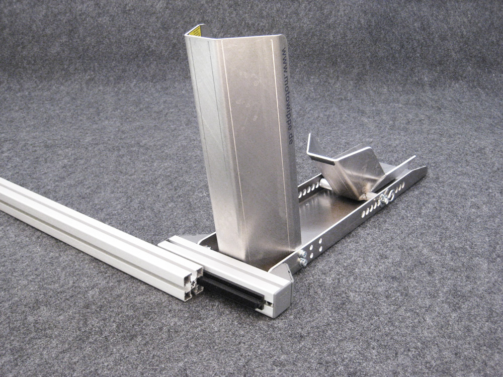 Eine Motorradwippe zum flexiblen, seitlichen Einschieben in fest montierte Profilschienen. Einmalig in Deutschland.