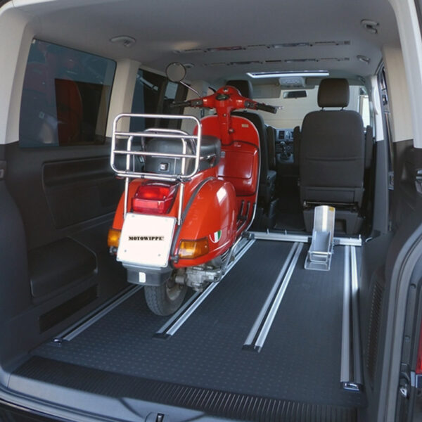 Spezielle Radwippe für den Transport einer Vespa in einem Mercedes Benz Vito, Viano oder V-Klasse